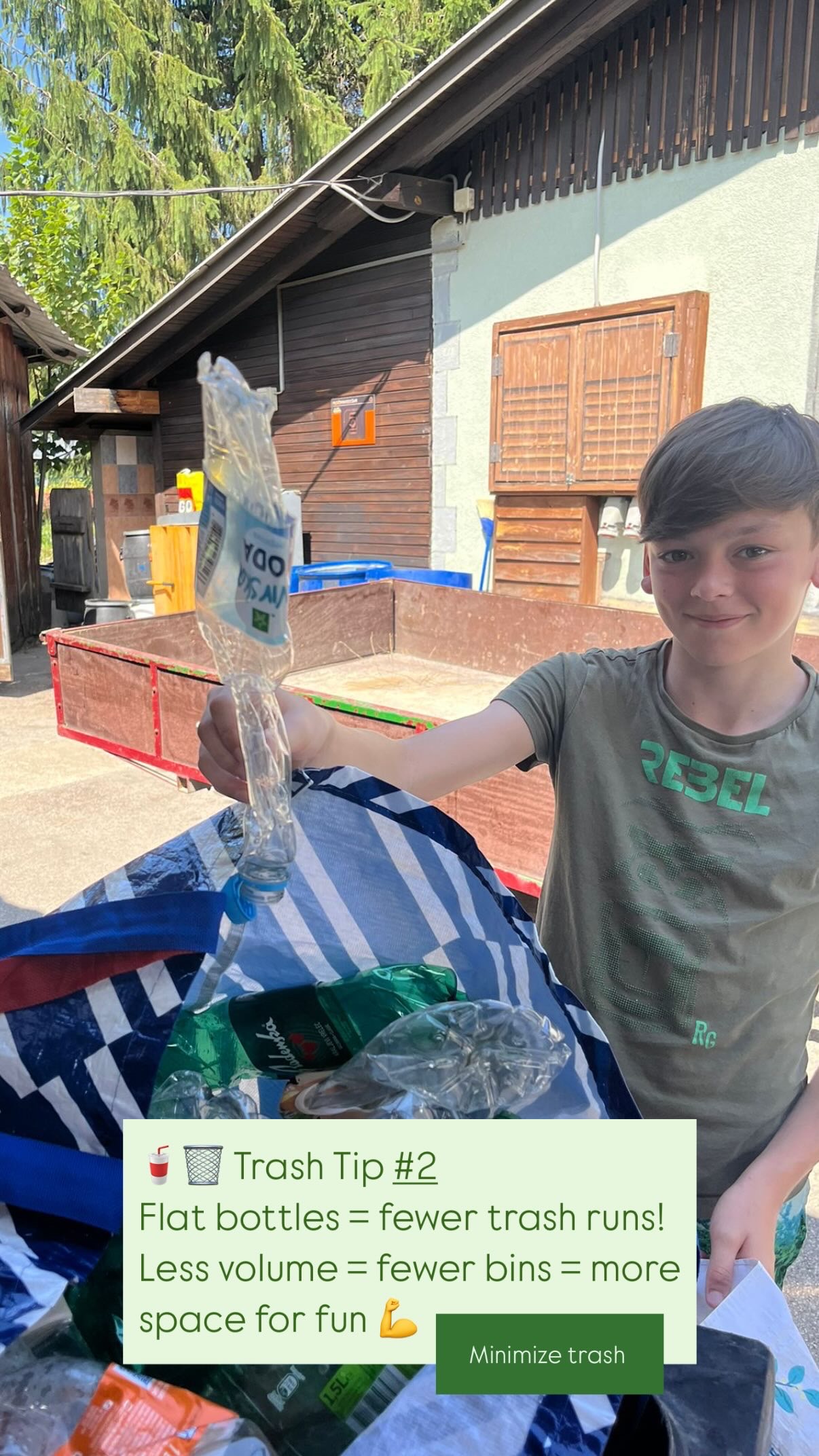 One of the biggest challenges we face today in our camp is waste. While camping, it's easy to forget how much rubbish we generate – packaging, bottles, wrappers, food leftovers. That's why we have clearly marked bins for waste separation throughout the camp, and we kindly ask you to dispose of your waste correctly. It may seem like a small thing, but every properly discarded item means less work for nature – and for the people who are doing their best to keep the camp clean. It also helps if we bring as little plastic as possible and use reusable containers and cutlery, which greatly reduces the amount of waste we leave behind.